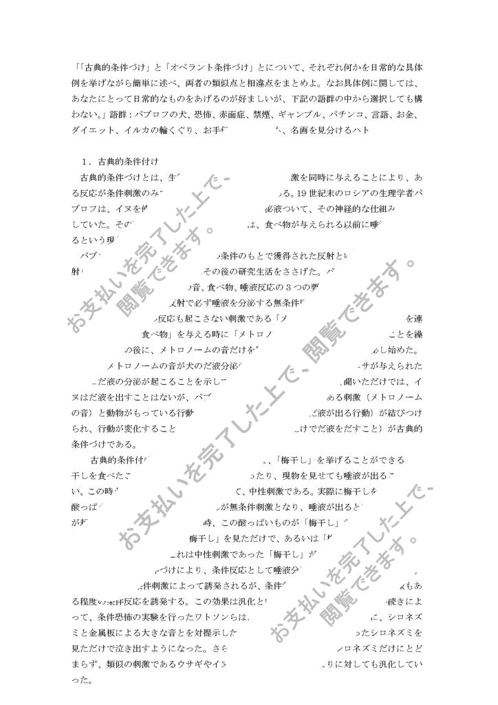 学習心理学レポート 科目修了試験 セット 古典的条件付け オペラント条件付けについて述べよ